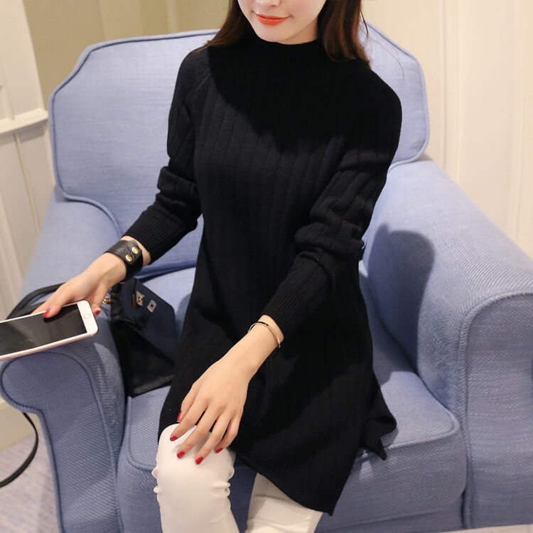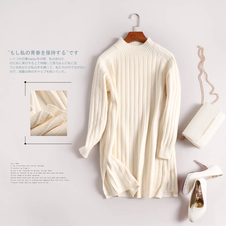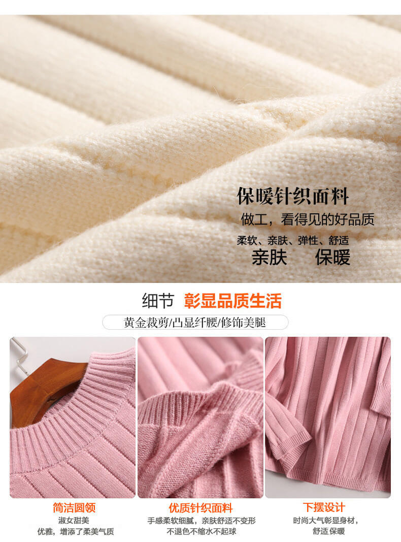 商品名称:秋冬新款女装针织衫外套秋冬中长款半高领宽松套头毛衣裙