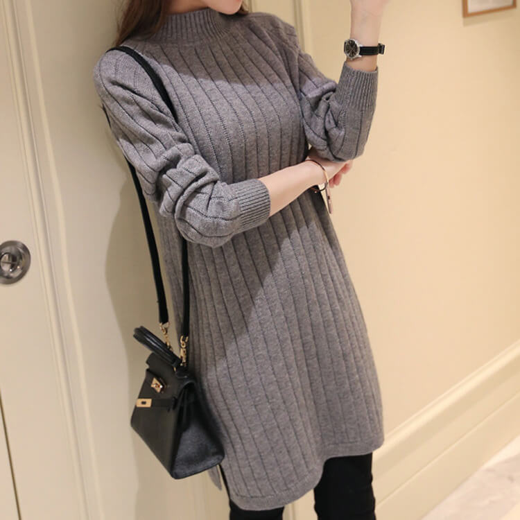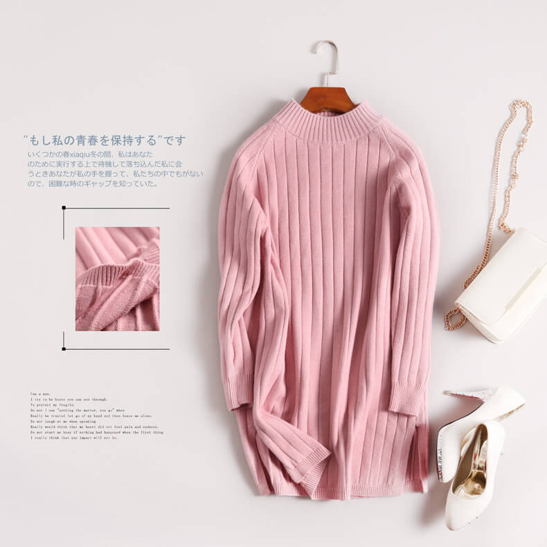 秋冬新款女装针织衫外套秋冬中长款半高领宽松套头毛衣裙