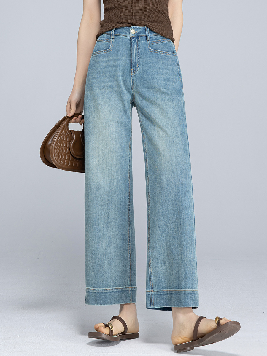 鑫阁垂感梨型身材九分直筒汉麻牛仔裤女新款时尚通勤百搭休闲裤
